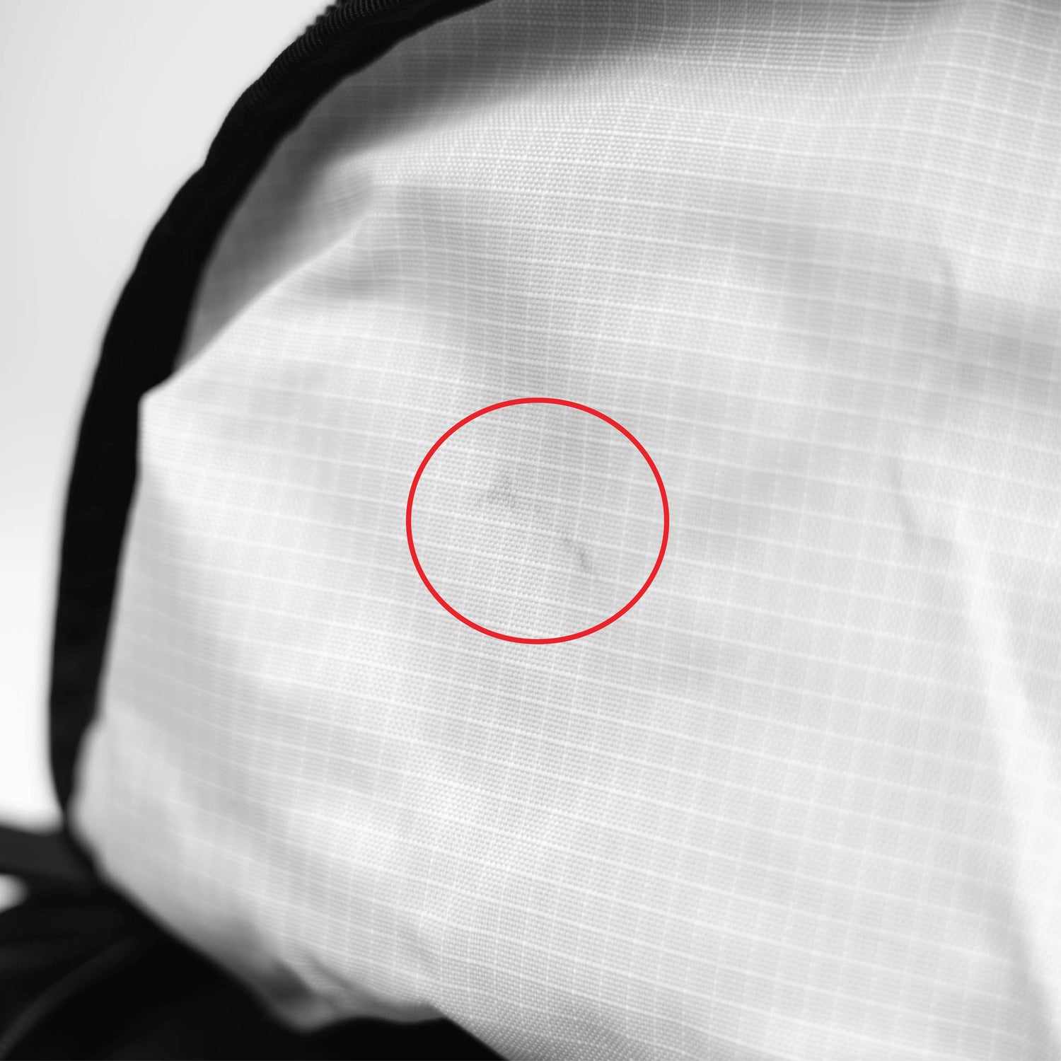 - Slight tear in the binding tape over the interior mesh pocket.