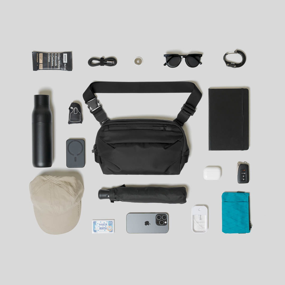 This bag replaced my Aer Day Sling 3. Pocketing and overall layout is well thought out. Love how every pocket sort of stacks on top of the space below it, using up the vertical space of the bag efficiently. The rear zip pocket is a must on a bag like this and this one has plenty of space for valuables. Being able to adjust the strap layout is such a nice touch. Most of all the straps on the bottom!! Just genius and probably the most versatile feature of this bag.